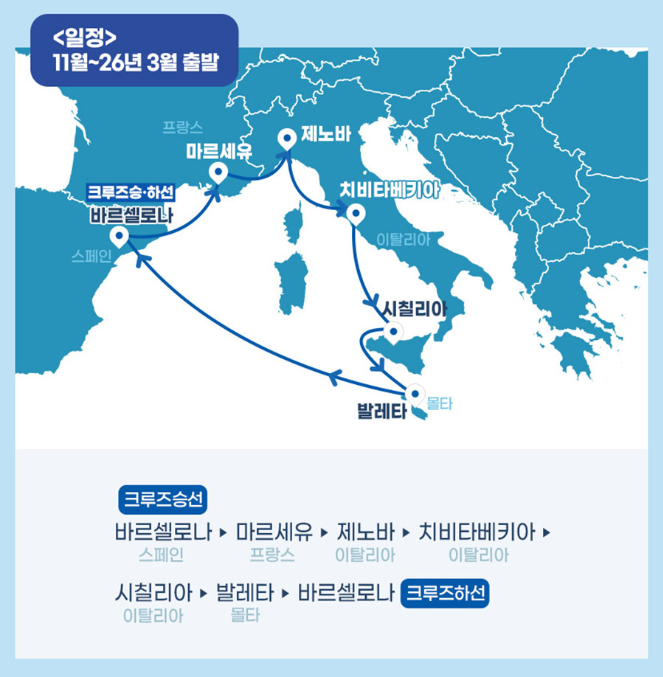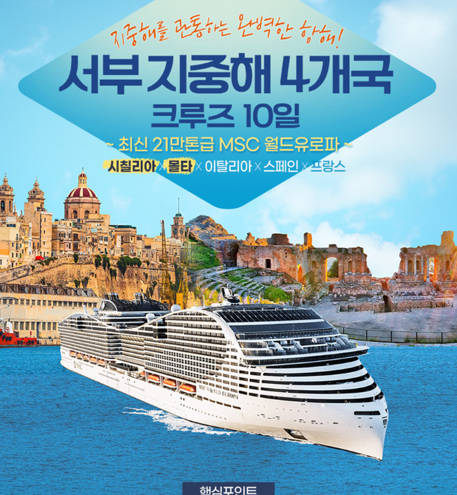 #2022년 첫 출항! 최신&초대형 21만톤급 MSC 월드유로파 탑승 #바르셀로나 특급호텔(★★★★★) 숙박 #바르셀로나 관광 포함 #마르세유/제노바/로마or나폴리/시칠리아/몰타 기항